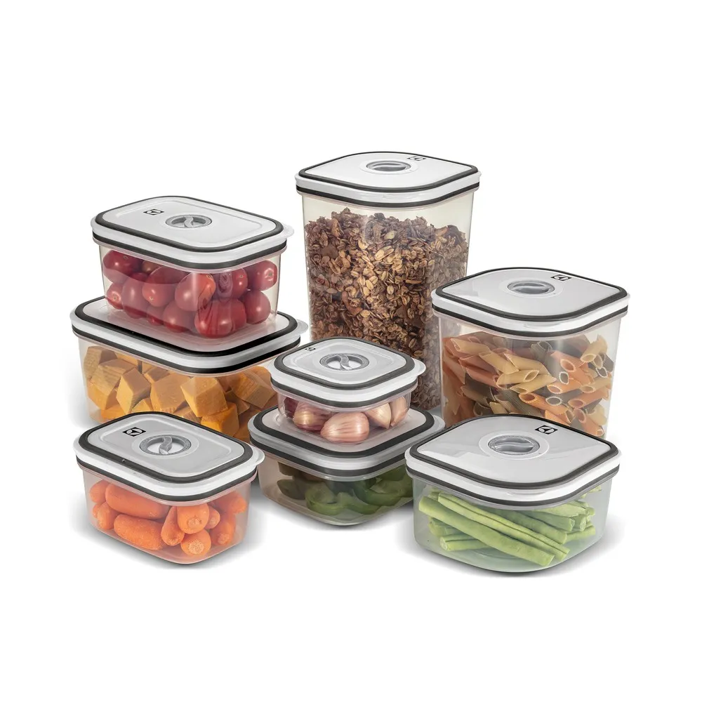 O sistema de fechamento hermético com vedação segura evita vazamentos e bloqueia a entrada de ar, prolongando a durabilidade dos alimentos.